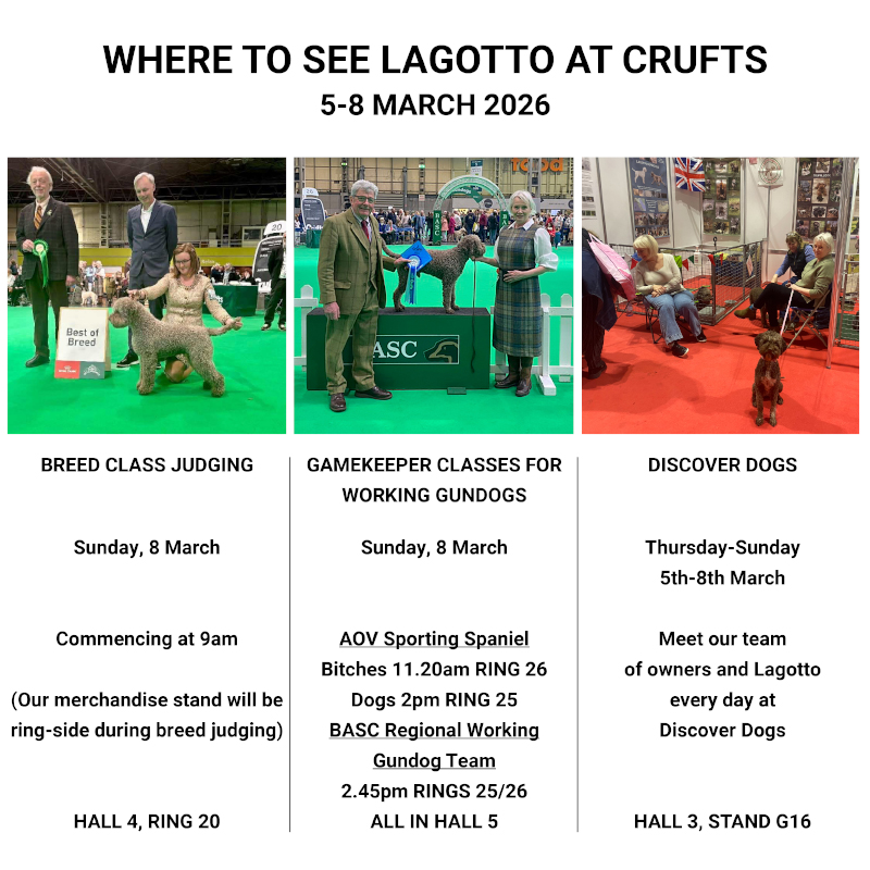 Whilst respecting the traditional work of the Lagotto as an ancient breed of duck retriever, we promote its role as a gundog – on land and in water – and honour its function as a specialised truffle dog. We show our dogs, and the breed’s versatility is further demonstrated by its involvement and success in many areas – agility, rally and obedience to name a few, added to which Lagotto make an excellent family pet. Please take a look through our website to find out more about the breed and about our Club.