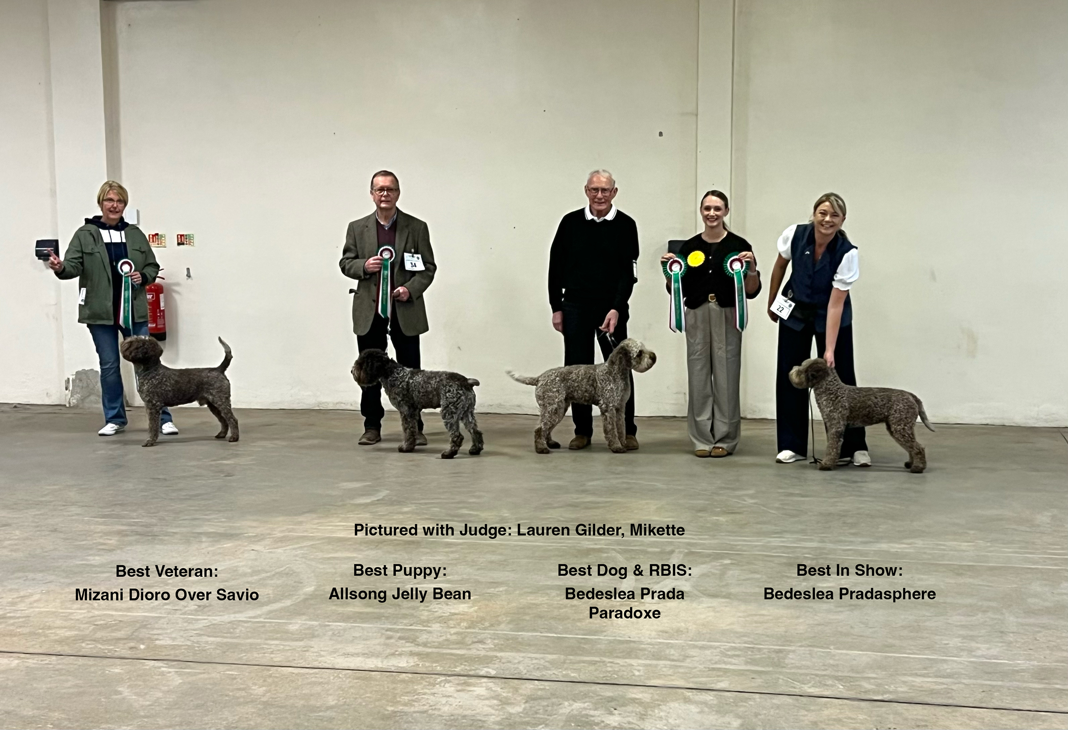 Every year from 1997 the Club held a Breed Speciality in June. Started as an Assessment in 1997 the year after the Club was founded, the first gathering of a handful of Lagotto was held in our Treasurer’s garden. By 2001 we had outgrown the garden and moved to Trottiscliffe Village Hall in Kent and our Assessment became our Annual Breed Speciality, moving to Kingston Blount Village Hall, Oxfordshire from 2014 which has continued as the venue for our June Open Shows.